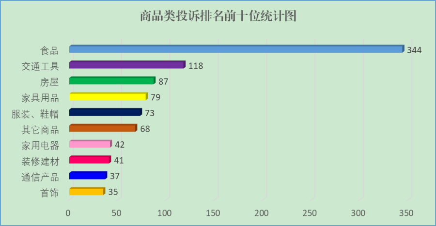 商品類投訴1213件,占投訴總量的56.66%。排名前十位的依次是: