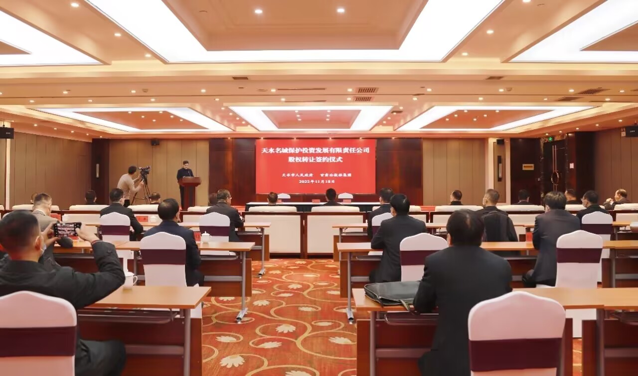 天水日?qǐng)?bào)訊【新天水·天水日?qǐng)?bào)記者王曉馨】11月18日,天水市名城保護(hù)公司股權(quán)轉(zhuǎn)讓協(xié)議簽約儀式舉行。市委書記馮文戈,省公航旅集團(tuán)黨委書記、董事長石培榮等共同見證簽約。市委副書記、市長王國先主持。市領(lǐng)導(dǎo)賈義翔、王東紅、胡志勇,市政府秘書長黎映廣出席。