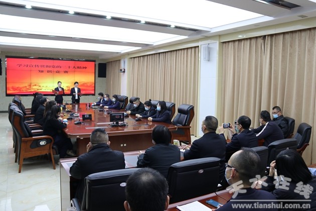 為進(jìn)一步深入學(xué)習(xí)貫徹黨的二十大精神,持續(xù)掀起學(xué)習(xí)宣傳貫徹?zé)岢保?2月9日,天水市人防辦黨支部和五里鋪宇航社區(qū)黨支部聯(lián)合舉辦學(xué)習(xí)宣傳貫徹黨的二十大精神知識(shí)競(jìng)賽。市人防辦黨組書記、主任陶勇出席并講話,市人防辦黨組成員和黨員干部職工、宇航社區(qū)梁昇副主任和部分黨員參加。