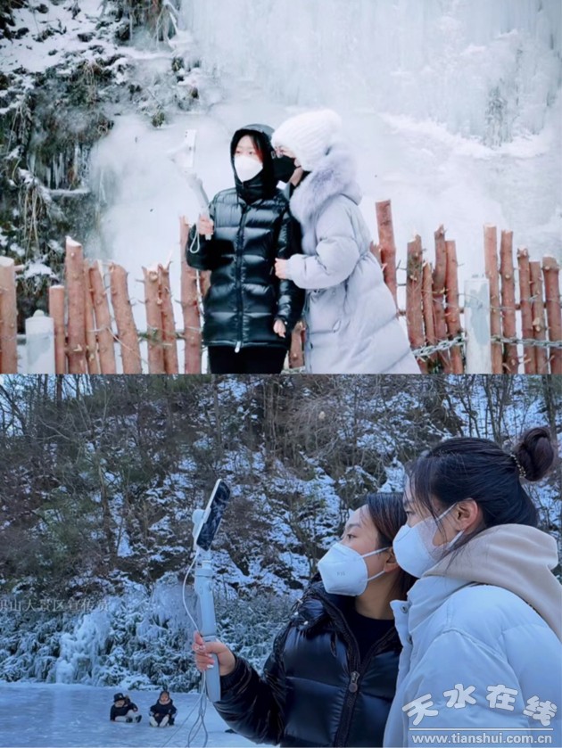 (景區(qū)宣傳員對(duì)冰瀑現(xiàn)場(chǎng)直播)