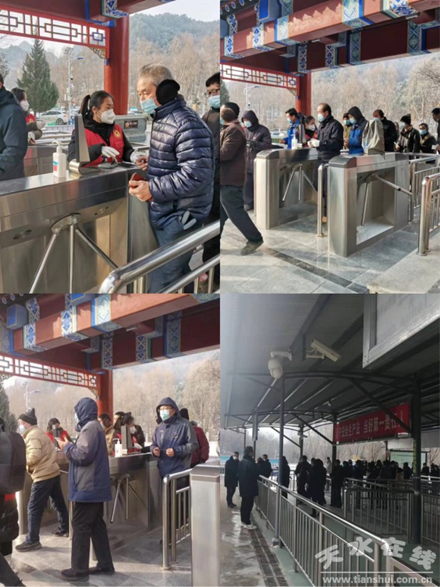 (工作人員對(duì)游客進(jìn)行檢票、疏導(dǎo)服務(wù))