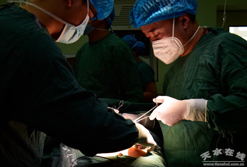 ▲1月21日,農(nóng)歷除夕,天水市第一人民醫(yī)院普外二科值班醫(yī)生正在為一患者做腹腔鏡手術(shù)。