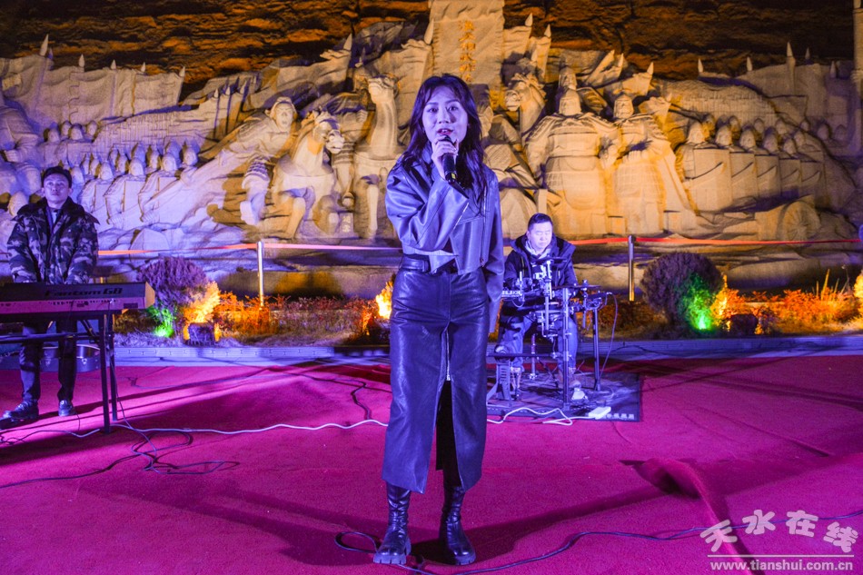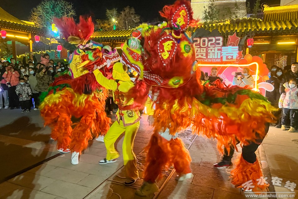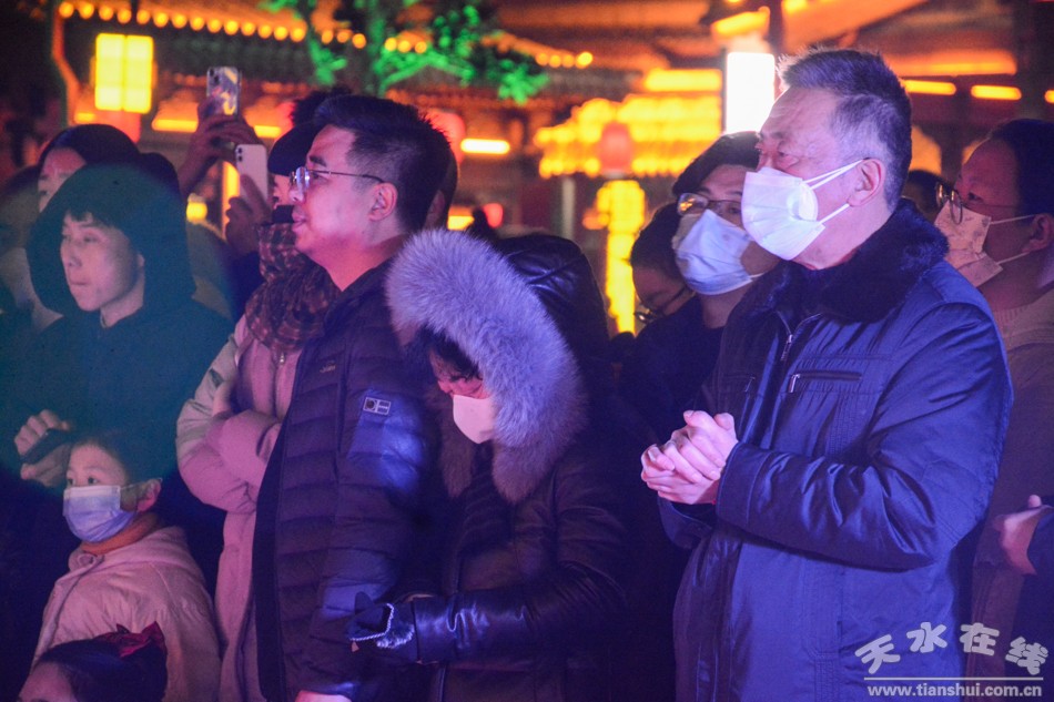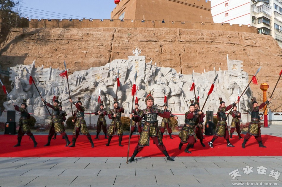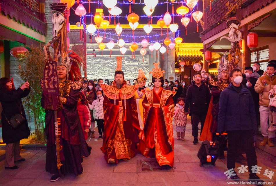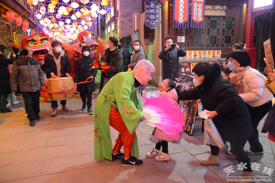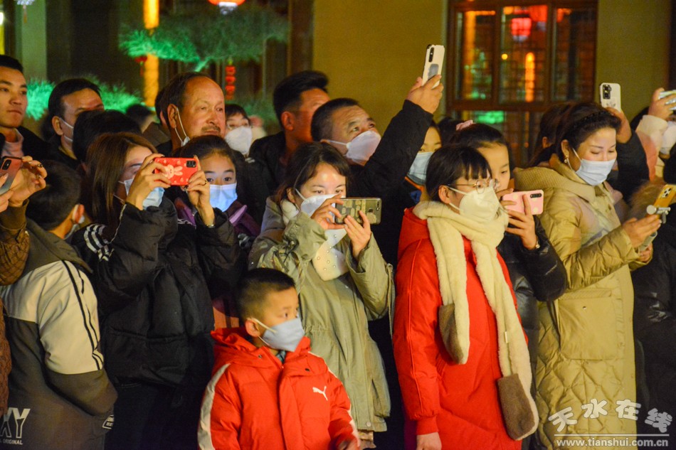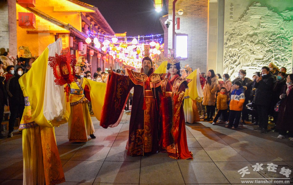 1月25日(大年初四)下午和晚上,天水市歌舞團(tuán)組織演藝團(tuán)隊(duì)到天水西關(guān)古城進(jìn)行多種形式的文藝表演,吸引眾多游客觀看。演出節(jié)目涵蓋非遺舞獅、旱船、毛驢秧歌、秦州小曲、祭祀漢服秀、樂舞表演、電聲樂隊(duì)、快閃舞蹈《夢(mèng)回三國》《秦州夾板》等。