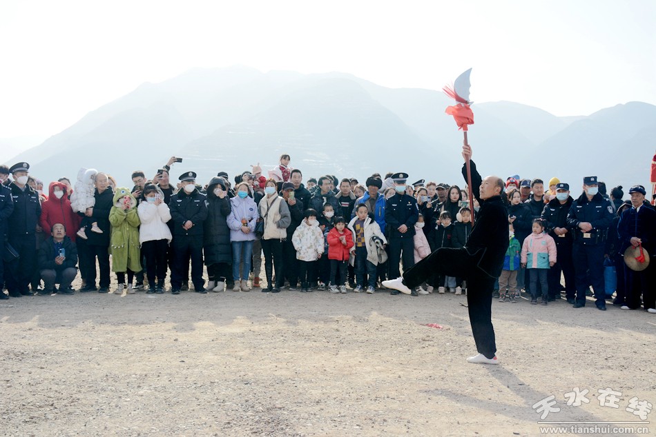 展演現(xiàn)場鑼鼓喧天,熱鬧非凡。非遺傳承人和參演群眾用旋鼓、武術(shù)、嗩吶、秧歌、舞獅、龍燈、秦腔、劃旱船等具有民俗文化特色的精彩節(jié)目,讓觀眾享受了一場豐富多彩的民俗文化盛宴。韻味悠長的嗩吶聲、鏗鏘雄渾的旋鼓、剛健有力的武術(shù)……極具武山地域特色的藝術(shù)表演,生動展示了“武山十有”文化的獨特魅力;顒咏Y(jié)束后,參演人員與觀眾一起暢游“三堡九灣”,感受傳統(tǒng)民俗文化,覽武山古堡文化旅游的獨特魅力。