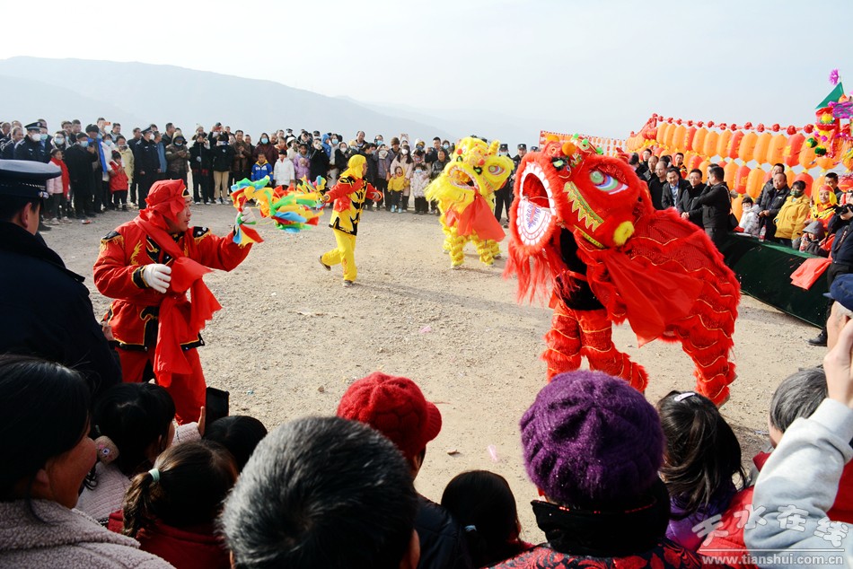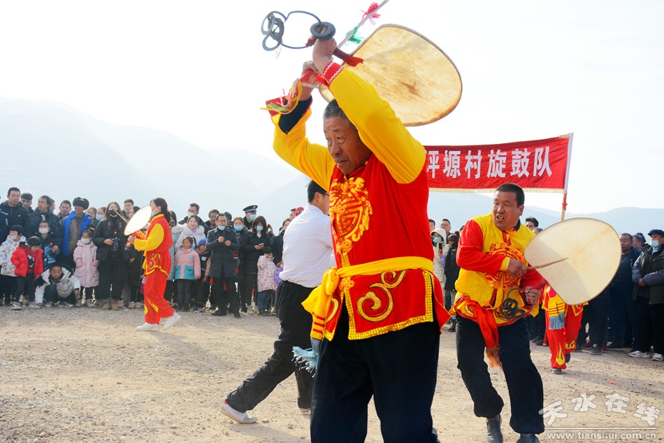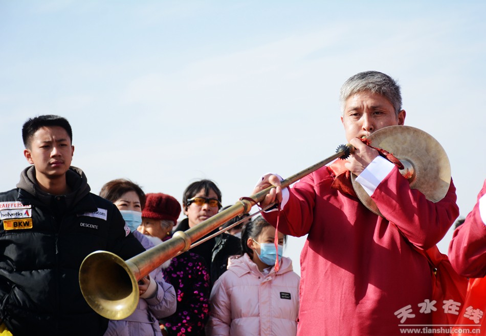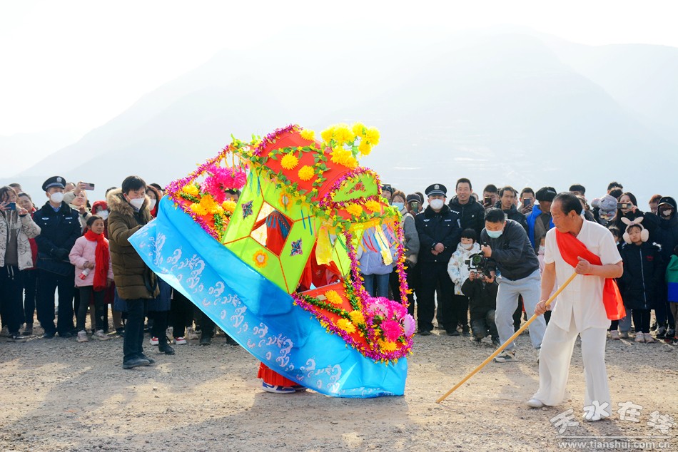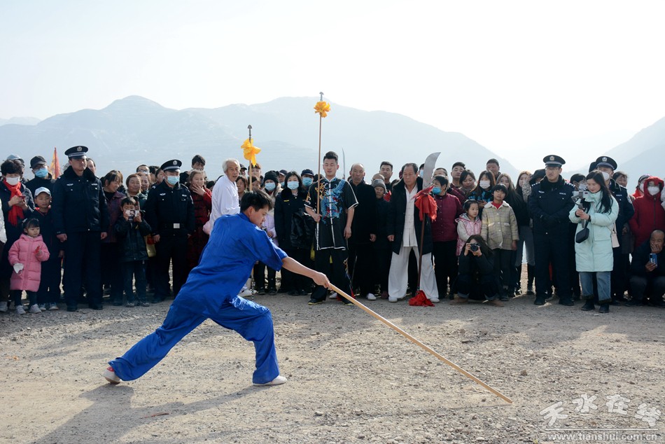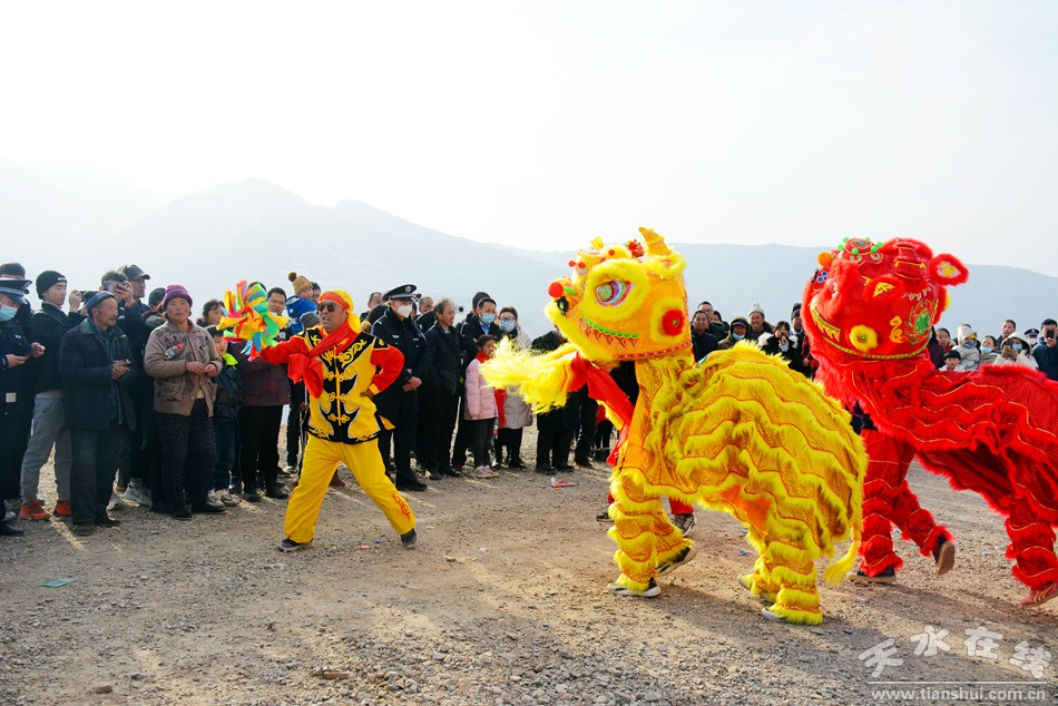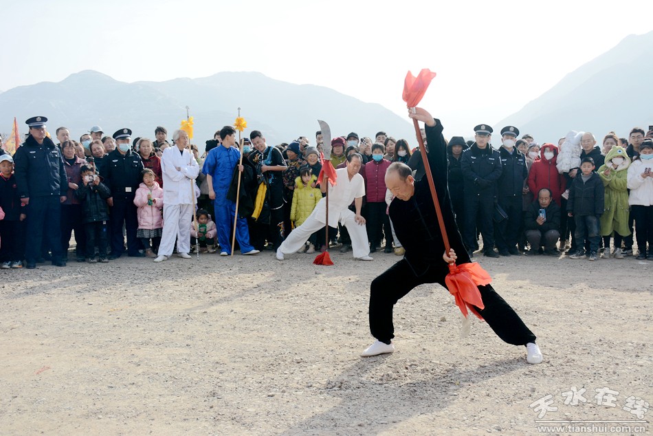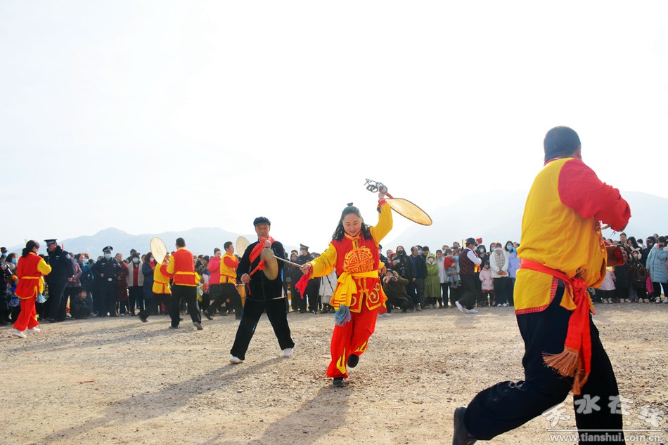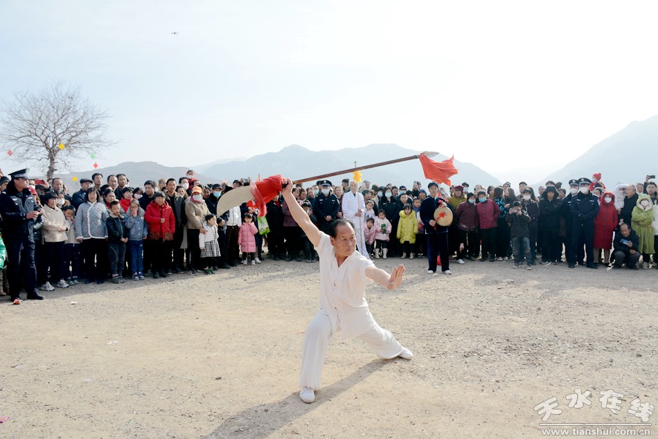 活動現(xiàn)場鑼鼓喧天,熱鬧非凡。舞動的獅子時而點頭、時而跳躍、時而金雞獨立,威風凜凜;兩條巨龍上下翻飛、氣勢如虹,贏得觀眾的陣陣掌聲;展演的武術(shù)項目為姜維黃龍帶把槍和武山春秋大刀,均為市級非遺代表性項目,表演者以其穩(wěn)、準、狠的凌厲攻勢,將一把槍舞得虎虎生風,讓人生畏,表演者掄起勢大力沉的春秋大刀橫砍直劈,威風八面,令人嘆為觀止。地方特色的旋鼓、漢船、嗩吶、秧歌、秦腔等原汁原味的地方民俗文化與非遺文化元素的節(jié)目輪番上演,讓群眾大開眼界,意猶未盡,展現(xiàn)武山人民群眾喜迎新春、意氣風發(fā)的豪邁情懷,為兔年新春增添了濃郁的文化氛圍。