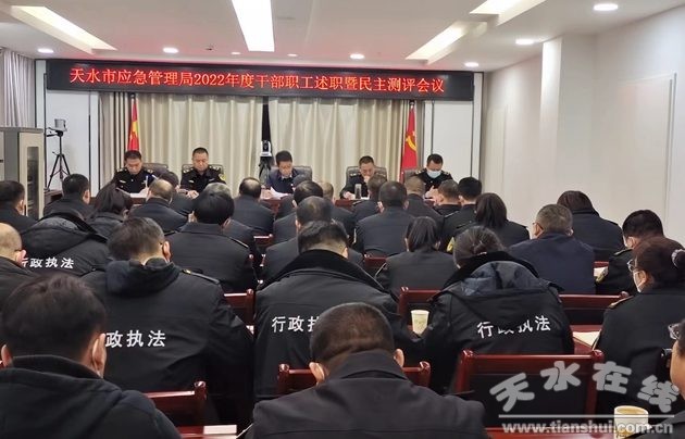 為全面總結(jié)2022年度工作成績,交流分享工作經(jīng)驗,研究謀劃2023年度目標(biāo)任務(wù)和思路舉措。1月30日,天水市應(yīng)急管理局召開2022年度干部職工述職暨民主測評會議,局黨委書記、局長葛彥迪出席會議并講話,黨委委員、副局長孟福榮主持會議,全體干部職工參加會議。