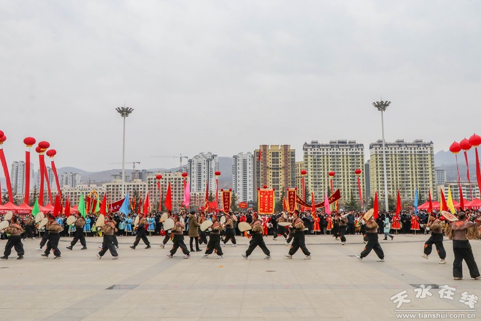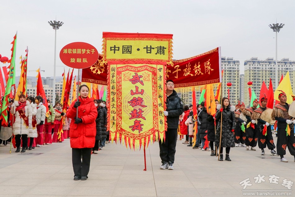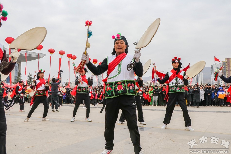 渭川歌盛世,旋鼓奏華章。2月1日,農(nóng)歷正月十一,武山縣“旋鼓大福舞·癸卯吉祥年”國家級非遺項目旋鼓舞展演活動在縣人民廣場舉行?h委書記王新強,縣人大常委會主任孫德銀,縣政協(xié)主席龐明全,以及縣四大組織其他在家領導出席活動。縣委常委、宣傳部部長胡麗霞宣布活動開幕。縣政府副縣長李峰致辭。數(shù)千名干部群眾匯集在這里載歌載舞,盡情抒發(fā)新春的喜悅心情。