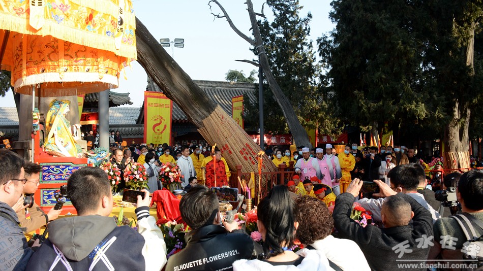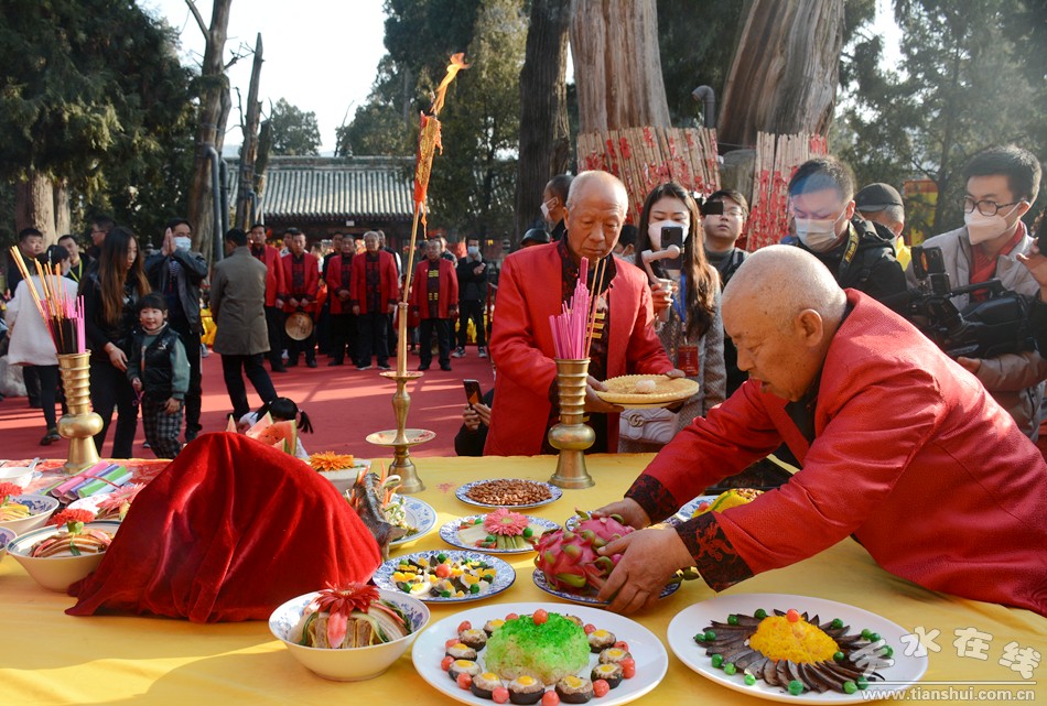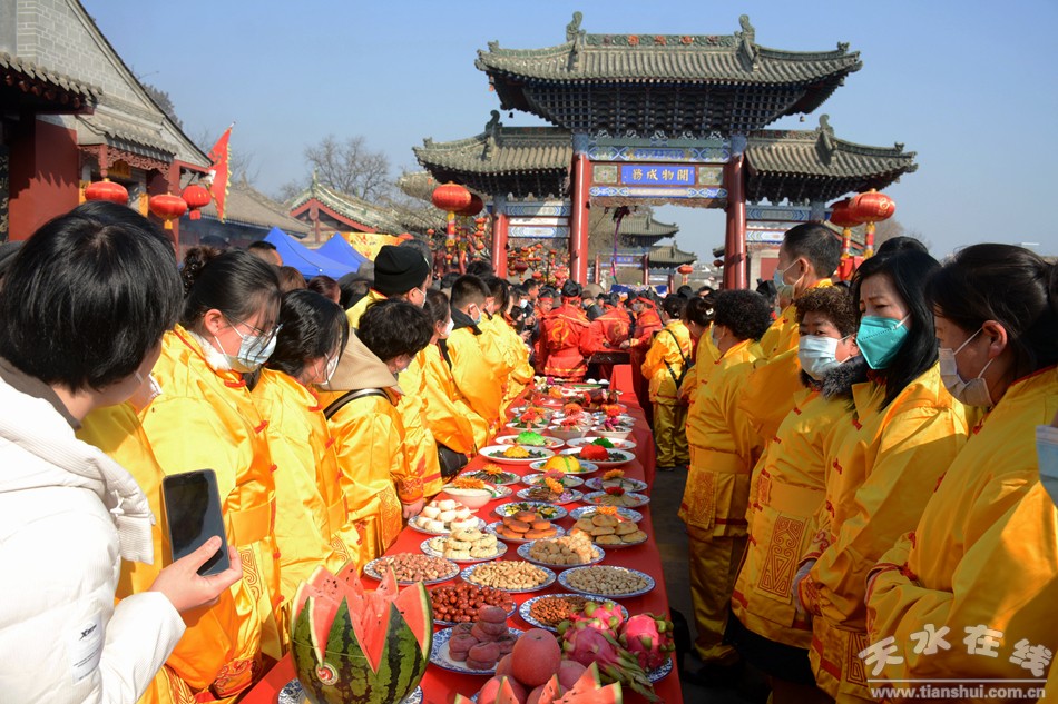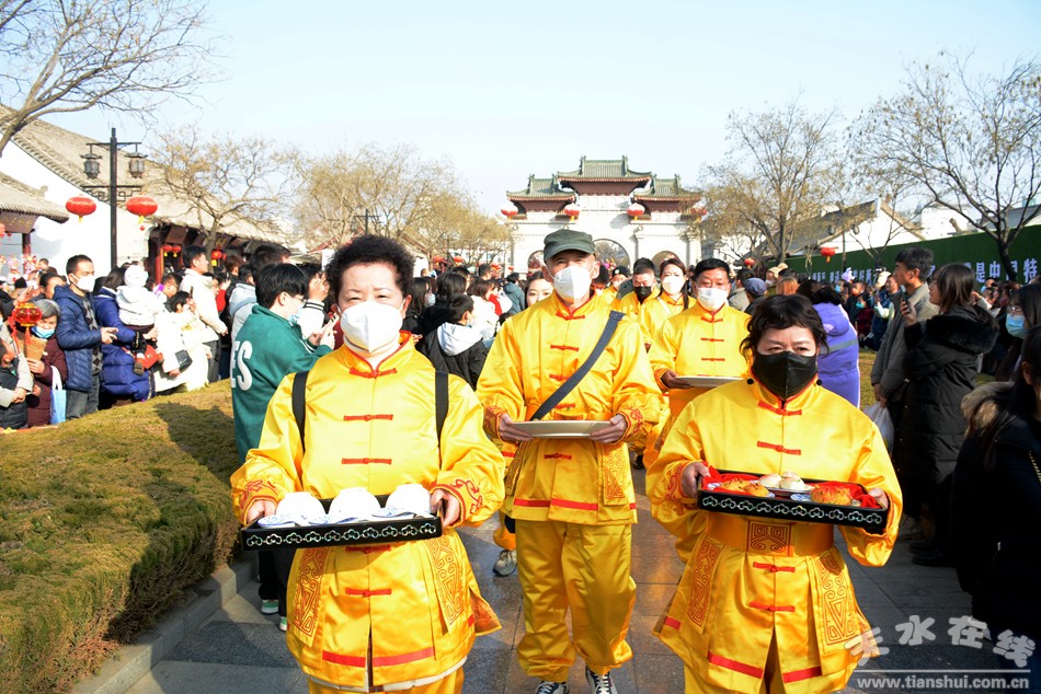 2月5日(正月十五)下午,“同心共慶—癸卯(2023)年天水伏羲廟 春祭文化廟會”活動迎獻飯儀式盛大舉行。當日16:00時,迎獻飯儀仗隊從伏羲路西牌坊起,經(jīng)女媧路→雙橋路向北→伏羲城東牌樓→伏羲路至東牌坊,進入伏羲廟。天水在線主播萌萌通過天水在線抖音號全程進行了現(xiàn)場直播。