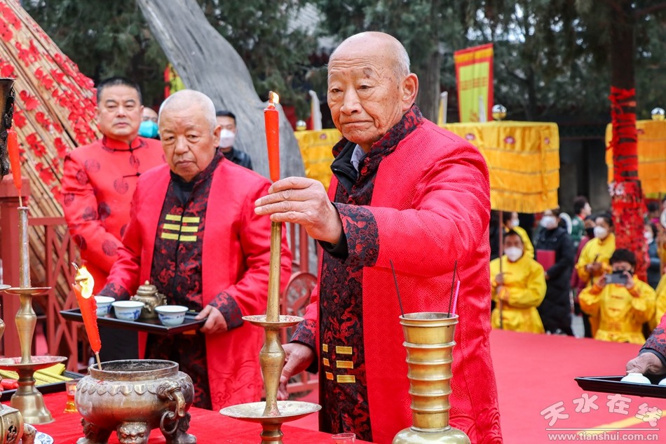 ▲在伏羲圣像前明燭、焚香、化表