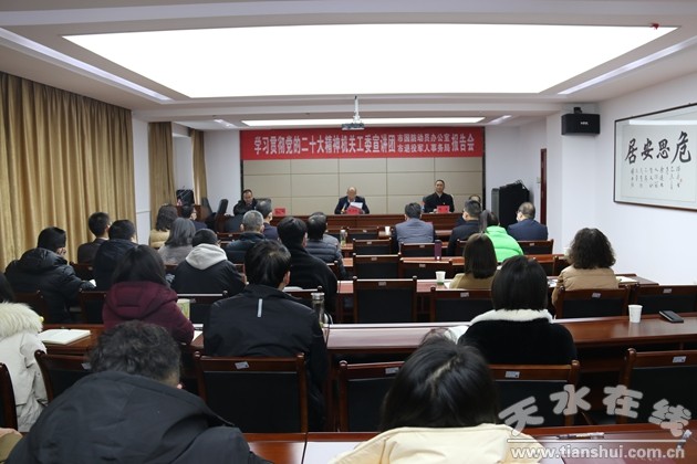為深入學(xué)習(xí)宣傳貫徹黨的二十大精神,切實(shí)把思想和行動統(tǒng)一到黨的二十大作出的重大決策部署上來,2月17日,天水市國防動員辦公室和市退役軍人事務(wù)局聯(lián)合舉辦學(xué)習(xí)貫徹黨的二十大精神機(jī)關(guān)工委宣講團(tuán)報(bào)告會。