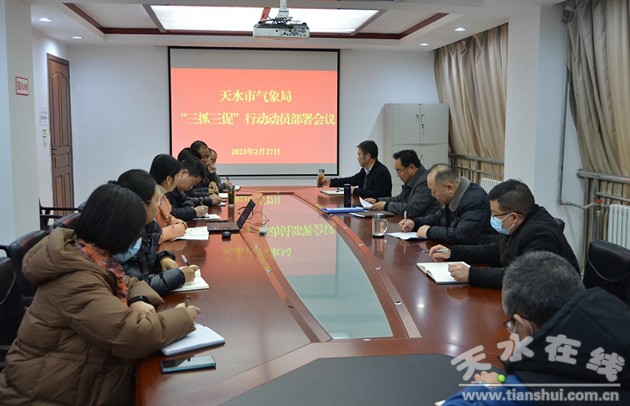 導(dǎo)小組組長胡昌升在全省“三抓三促”行動動員部署會議上的講話精神和《天水市“抓學(xué)習(xí)促提升抓執(zhí)行促落實抓效能促發(fā)展”行動實施方案》,宣講了專項行動的指導(dǎo)思想、基本原則和主要目標,結(jié)合全市氣象工作實際,圍繞天水氣象高質(zhì)量發(fā)展要求,針對抓學(xué)習(xí)促提升、抓執(zhí)行促落實、抓效能促發(fā)展三個方面分析了存在的問題,提出了年度十項重點工作任務(wù)和要求。