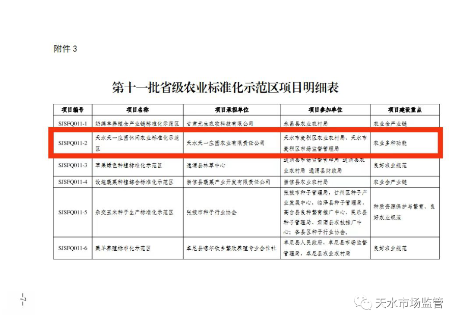近日,省市場(chǎng)監(jiān)督管理局下達(dá)了農(nóng)業(yè)農(nóng)村及新型城鎮(zhèn)化標(biāo)準(zhǔn)化試點(diǎn)示范項(xiàng)目建設(shè)名單,由天水市市場(chǎng)監(jiān)督管理局推薦的“天水天一莊園休閑農(nóng)業(yè)標(biāo)準(zhǔn)化示范區(qū)”被確定為第十一批省級(jí)農(nóng)業(yè)標(biāo)準(zhǔn)化示范區(qū)項(xiàng)目,“秦安縣千戶鎮(zhèn)農(nóng)村綜合改革標(biāo)準(zhǔn)化試點(diǎn)(鄉(xiāng)村治理體系建設(shè))”被確定為省級(jí)農(nóng)村綜合改革標(biāo)準(zhǔn)化試點(diǎn)項(xiàng)目。2019年以來,我市新增各級(jí)各類標(biāo)準(zhǔn)化試點(diǎn)示范項(xiàng)目9個(gè),其中農(nóng)業(yè)農(nóng)村領(lǐng)域4個(gè)。