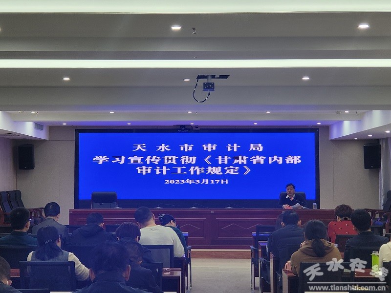 為了加強內(nèi)部審計工作,建立健全內(nèi)部審計制度,提升內(nèi)部審計工作質(zhì)量,充分發(fā)揮內(nèi)部審計作用,3月17日,按照省審計廳統(tǒng)一部署和市審計局黨組具體安排,天水市審計局二級調(diào)研員馬群同志在“審計大講堂”系列講座第四講中,結(jié)合《甘肅省審計廳關(guān)于學(xué)習宣傳貫徹<甘肅省內(nèi)部審計工作規(guī)定>的通知》(甘省發(fā)[2023]18號)精神,專題解讀、宣講《甘肅省內(nèi)部審計工作規(guī)定》。市審計局全體干部職工參加了專題講座。