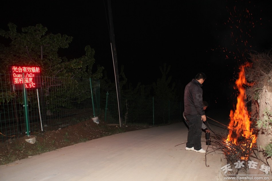 凍害來臨前1-2小時(shí),在果園上風(fēng)口處,可用自配防霜煙霧劑(3份硝酸銨、5份鋸末、1份廢柴油、1份細(xì)煤粉),作物秸稈、智能煙霧發(fā)生器,背負(fù)式煙霧發(fā)生機(jī)等制造煙霧,發(fā)煙防凍害。一般每畝堆放4-6堆(煙堆的大小和多少隨凍害強(qiáng)度和持續(xù)時(shí)間而定),夜間密切注意溫度變化,花蕾期當(dāng)園內(nèi)氣溫降至2℃、花期4℃、幼果期2℃時(shí)點(diǎn)燃熏煙。