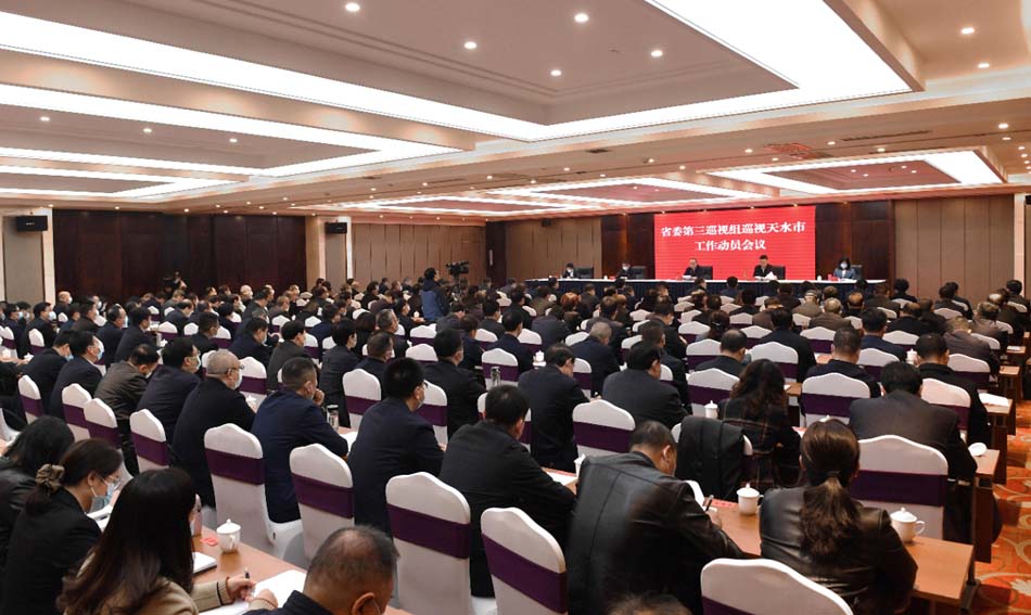 天水日?qǐng)?bào)訊【新天水·天水日?qǐng)?bào)記者馬放】根據(jù)省委關(guān)于巡視工作的統(tǒng)一部署,4月4日,省委第三巡視組巡視天水市工作動(dòng)員會(huì)召開(kāi)。會(huì)前,省委第三巡視組組長(zhǎng)魏文德主持召開(kāi)與天水市委書(shū)記馮文戈的見(jiàn)面溝通會(huì),傳達(dá)省委主要負(fù)責(zé)同志在省委書(shū)記專(zhuān)題會(huì)議聽(tīng)取上一輪巡視綜合情況匯報(bào)時(shí)的講話精神,通報(bào)巡視任務(wù)、工作安排和工作要求。會(huì)上,魏文德作了動(dòng)員講話,對(duì)做好巡視工作提出要求;馮文戈主持會(huì)議并講話。