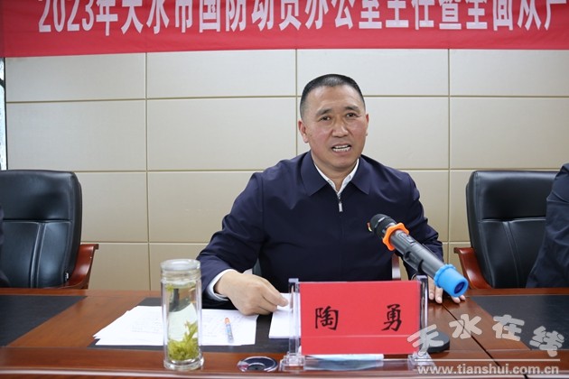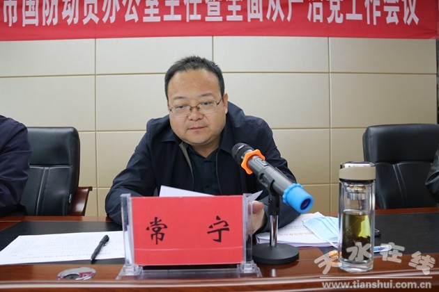 4月4日,天水市召開全市國防動員辦公室主任暨全面從嚴治黨工作會議。市國動辦黨組書記、主任陶勇同志出席會議并講話,市紀委監(jiān)委派駐市委組織部紀檢監(jiān)察組副組長常寧同志到會指導(dǎo)并對全市國防動員系統(tǒng)全面從嚴治黨工作、黨風廉政建設(shè)、反腐敗工作和巡察整改工作提出具體要求。市國動辦黨組班子成員,各縣(區(qū))國動辦主任、專職副主任、專職干部和市國動辦全體干部職工參加了會議。