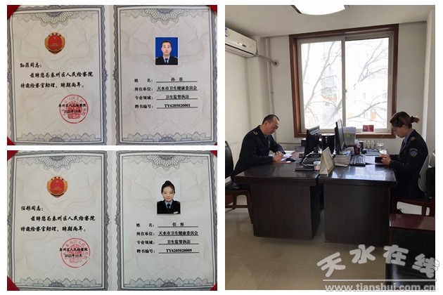 為進(jìn)一步貫徹落實(shí)最高人民檢察院《行政機(jī)關(guān)專業(yè)人員兼任檢察官助理工作辦法(試行)》等相關(guān)規(guī)定,進(jìn)一步深化執(zhí)法司法協(xié)作配合,近日,天水市衛(wèi)生計(jì)生委綜合監(jiān)督執(zhí)法局任彤、孫菲兩位同志被秦州區(qū)人民檢察院聘為特邀檢察官助理。
