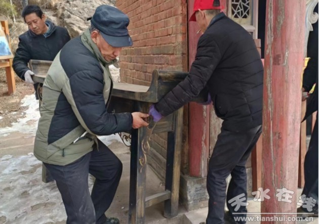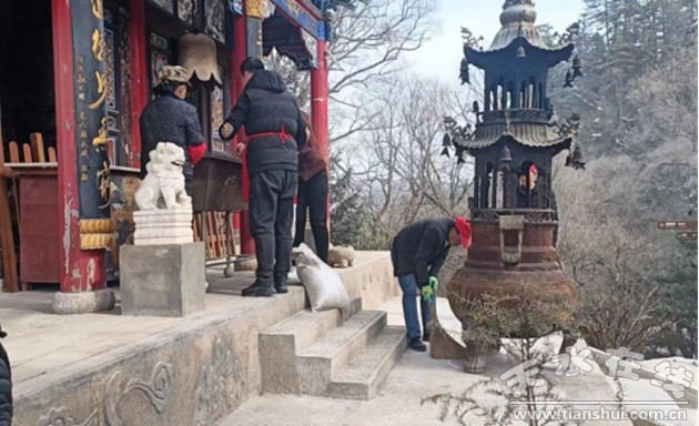 天水石門景區(qū)服務(wù)中心組織人員清理殿宇周邊雜物