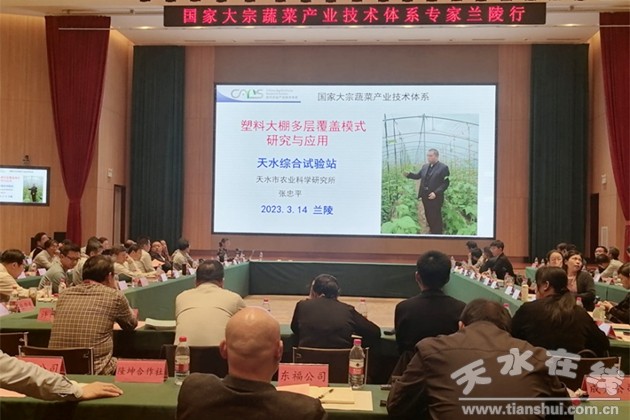(國家大宗蔬菜產(chǎn)業(yè)技術(shù)體系天水試驗站站長張忠平就“塑料大棚多層覆蓋模式研究與應(yīng)用”進行了交流與匯報)