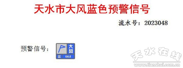 天水市氣象臺2023年04月28日08時(shí)43分發(fā)布大風(fēng)藍(lán)色預(yù)警信號