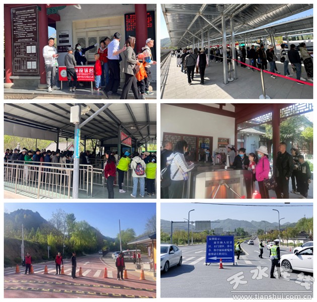 為疏導高峰期旅游交通,景區(qū)管委會及時啟用三級分流預案,在麥積山景區(qū)各個進入路口,設立游客分流勸導站,交警、公安、景區(qū)工作人員駐點值守,將游客引導至仙人崖、石門、街亭溫泉、凈土寺等景區(qū)景點參觀游覽,并引導擇日預購麥積山門票。同時,通過定向發(fā)送手機短信提醒的方式,將景區(qū)停票及交通疏導信息發(fā)送至途徑三級分流點的游客手機上,切實提高疏導提醒的針對性和有效性。
