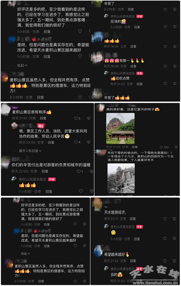 這個(gè)五一假期的旅游火爆,正是人間煙火氣回歸的具體表現(xiàn)。幸福感,就在那些與家人燈火下團(tuán)坐的日常里,在那些同親朋好友一起尋找美好的旅途里。我們一同期盼這種熱鬧的氛圍,能帶給我們更多的信心和力量。麥積山大景區(qū)在做好安全保障的同時(shí),推出更多更優(yōu)質(zhì)的產(chǎn)品和服務(wù)體驗(yàn),打通景區(qū)內(nèi)產(chǎn)業(yè)鏈的壁壘,讓游客有更多深度優(yōu)質(zhì)的體驗(yàn),全力引領(lǐng)天水旅游業(yè)的復(fù)蘇和穩(wěn)步發(fā)展。