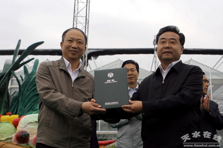 ▲省政協(xié)副主席、天水市委書記張景輝為武山綠色農(nóng)業(yè)示范縣授牌