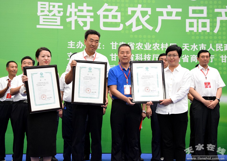 ▲省農(nóng)業(yè)農(nóng)村廳頒發(fā)了“武山萵筍”“武山辣椒”“武山油白菜”綠色食品A級(jí)產(chǎn)品證書。