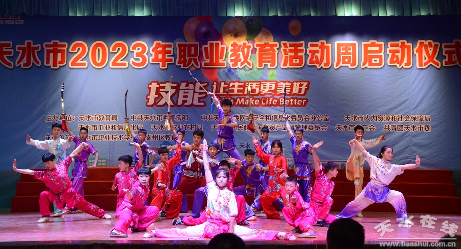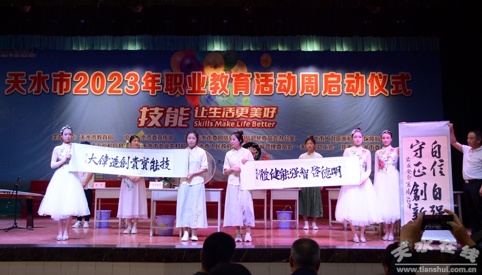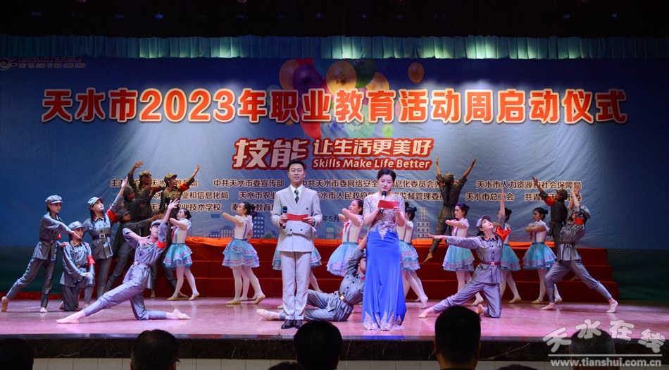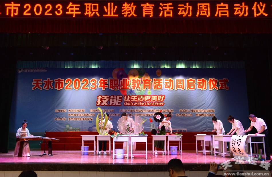 5月16日上午,天水市2023年職業(yè)教育活動周啟動儀式在市職業(yè)技術學校舉行。市委教育工委書記、市教育局黨組書記楊瑞峰講話并宣布活動周啟動,市教育局局長沈建玲通報了2023年省級技能大賽獲獎情況,市職校黨委書記師祥珍致辭。市委宣傳部、市委網(wǎng)信辦、市工信局、市人社局、市農(nóng)業(yè)農(nóng)村局、市政府國資委、市總工會、團市委相關負責同志,各縣(區(qū))教育局分管同志、各中職學校校長、職普融通試點普通高中學校校長、師生代表等共計1000余人參加啟動儀式。