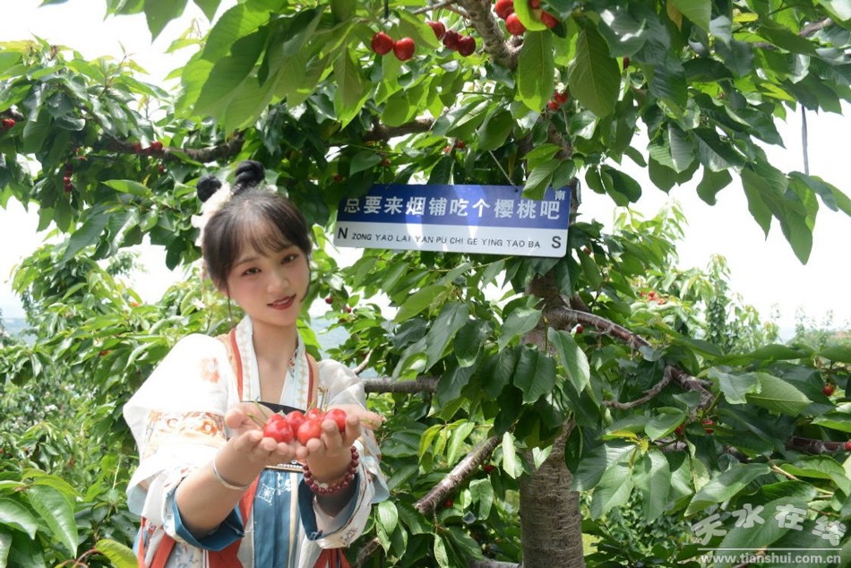 六月的天水,又是一年櫻桃紅。煙鋪大地,漫山遍野的紅燈、美早、拉賓斯、早大果、黑珍珠等等,這一個個香甜的名字,香甜了整個古城。