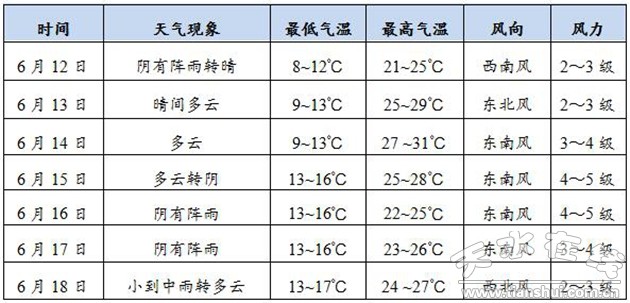 預計本周我市多陰雨天氣,其中12日、16~17日陰有陣雨,18日白天小到中雨。以秦州區(qū)為例,最低氣溫12~17℃,最高氣溫25~31℃。具體預報如下(白天到夜間):
