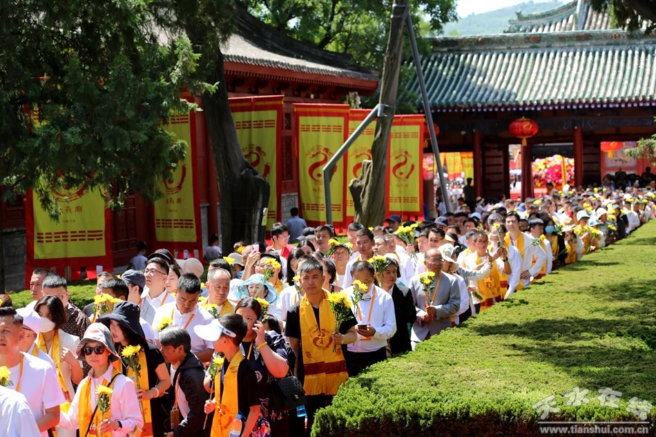 社會(huì)各界的代表進(jìn)入伏羲廟行鞠躬禮,敬獻(xiàn)鮮花。 配圖:天水在線(xiàn)