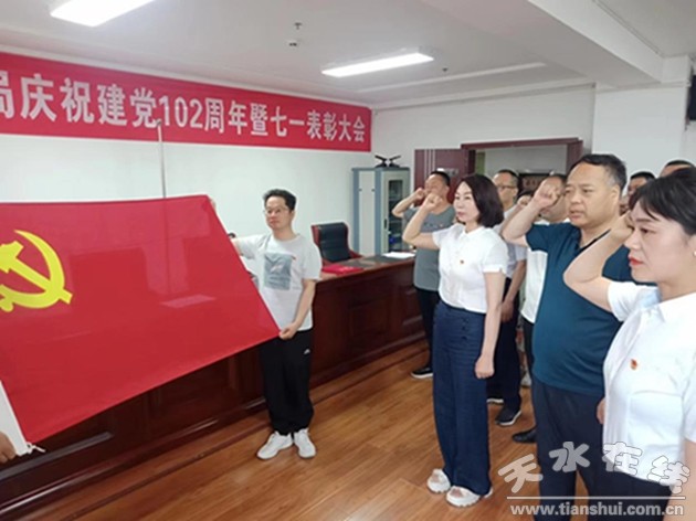會上,嚴格按照市直機關工委系列活動通知要求,重溫入黨誓詞,學習黨的二十大精神,開展專題學習研討,表彰優(yōu)秀共產黨員、優(yōu)秀黨務工作者,部署今后黨的建設工作。會議在嘹亮的國歌聲中開始,全體黨員和干部職工高唱國歌,為慶祝中國共產黨成立102周年暨七一表彰大會營造了良好氛圍,全體黨員面對黨旗整齊肅立,在領誓人的帶領下,舉起右拳,在鮮紅的黨旗前重溫《入黨誓詞》,對全體黨員進行了心靈的洗禮,我志愿加入中國共產黨,擁護黨的綱領,遵守黨的章程,履行黨員義務,執(zhí)行黨的決定,嚴守黨的紀律,保守黨的秘密,對黨忠誠,積極工作……。鏗鏘誓言,宣誓了對黨的事業(yè)忠貞不渝、為之奮斗終身的堅定決心。馬小龍同志從提高政治站位,深入學習貫徹習近平新時代中國特色社會主義思想和黨的二十大精神;加強黨的建設,提高黨組織凝聚力戰(zhàn)斗力;強化黨性觀念,發(fā)揮黨員先鋒引領作用;推進作風建設,全面提升基層黨建工作質量四個方面對加強黨的建設作了安排部署。號召廣大黨員以“三抓三促”行動為抓手,求真務實做好工作,不忘初心,牢記使命,與時俱進,開拓創(chuàng)新,以奮發(fā)有為的精神狀態(tài),一項一項推動,一件一件落實,確保各項工作任務取得實實在在的成效。