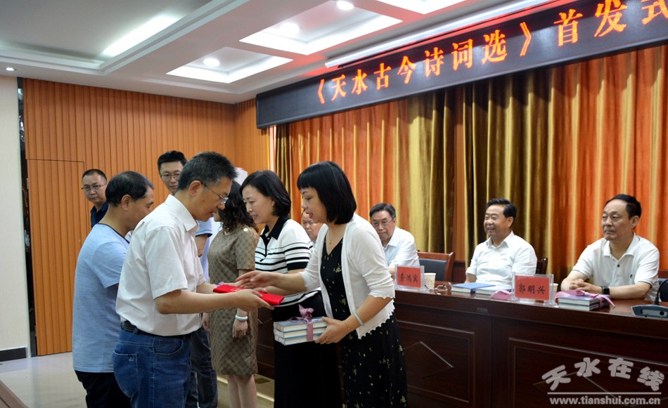 首發(fā)式上,市詩詞學(xué)會還為市圖書館、市檔案館、秦州區(qū)圖書館等單位贈送了《天水古今詩詞選》。 |
