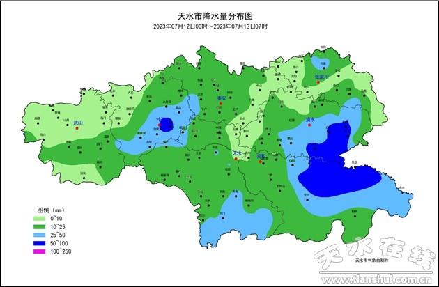 07月12日00時(shí)至13日07時(shí),降水情況統(tǒng)計(jì)如下: