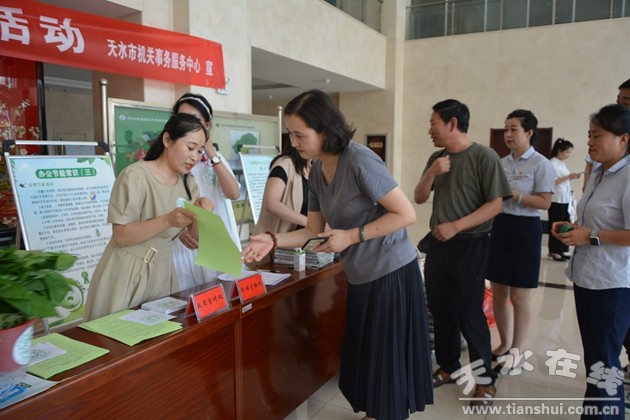 為深入學(xué)習(xí)貫徹習(xí)近平生態(tài)文明思想,傳播節(jié)能降碳和綠色發(fā)展理念,倡導(dǎo)綠色低碳生活方式,充分發(fā)揮公共機(jī)構(gòu)在全社會(huì)綠色低碳發(fā)展中的示范引領(lǐng)作用。7月14日下午,天水市機(jī)關(guān)事務(wù)服務(wù)中心在市政務(wù)中心一號(hào)樓大廳開展了以“與綠色相約,與環(huán)保同行”為主題的廢舊物品綠色兌換活動(dòng)。
