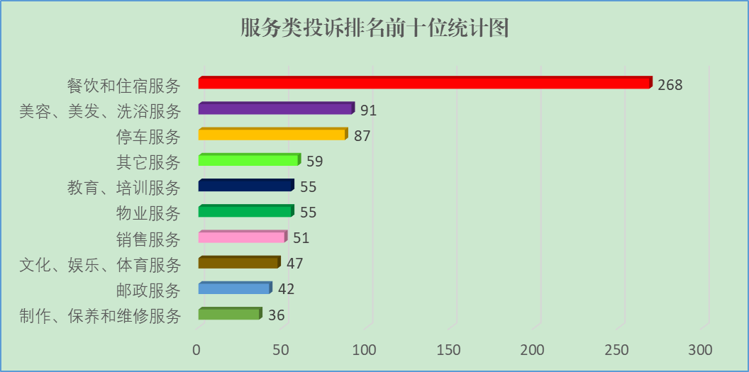 服務類投訴1799件,占投訴總量的46.33%。排名前十位的依次是