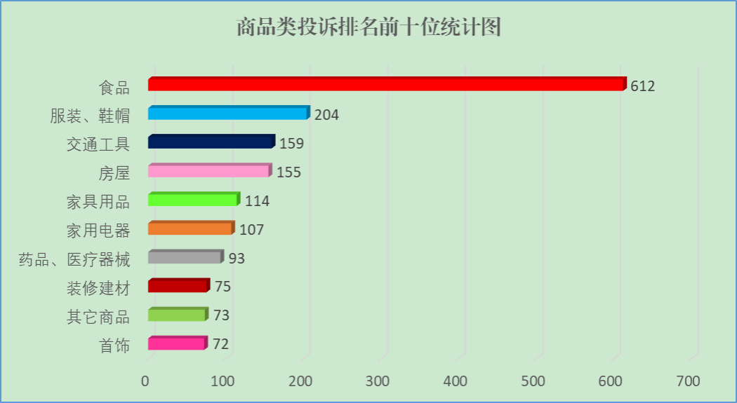 商品類投訴2084件,占投訴總量的53.67%。排名前十位的依次是
