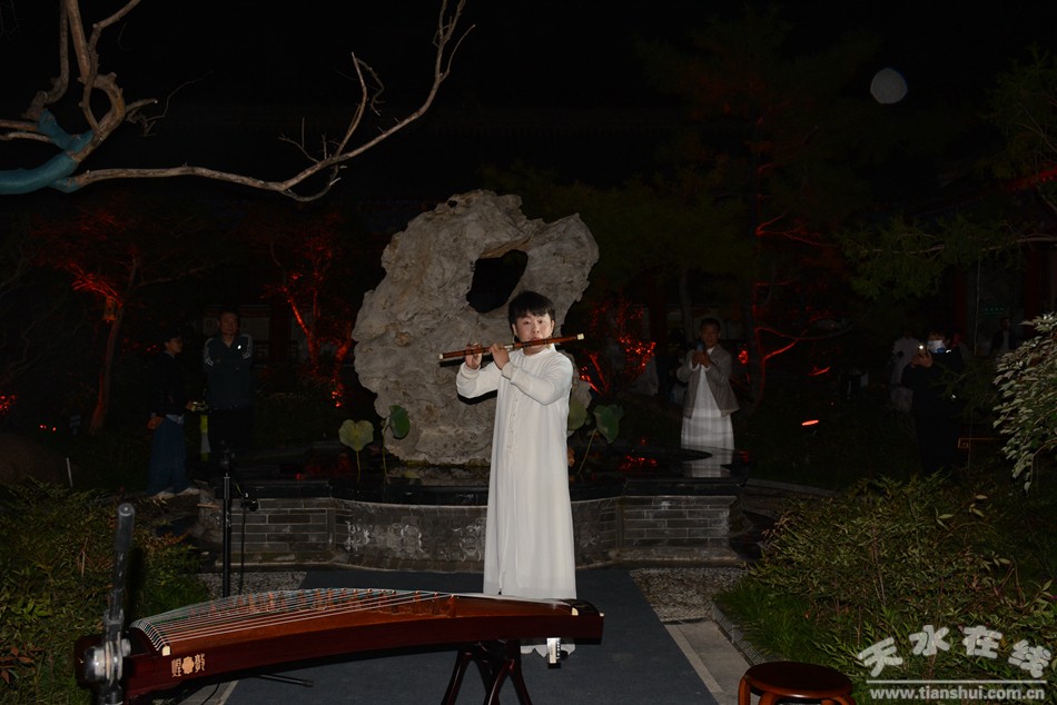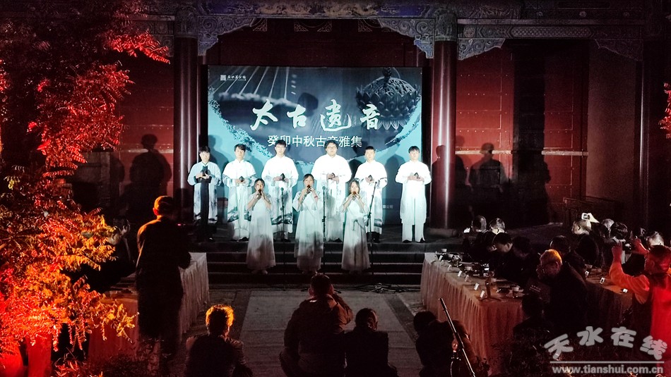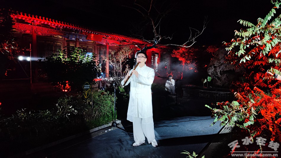 9月28日晚,在中秋、國慶雙節(jié)來臨之際,由天水市文化和旅游局和天水師范學(xué)院音樂舞蹈學(xué)院主辦,天水美術(shù)館、天和之聲琴蕭會(huì)館、天水國馥茗茶葉有限公司承辦的“太古遺音”癸卯中秋古音雅集音樂會(huì)在萬壽宮濃情上演,現(xiàn)場伴隨著旖旎的燈光、霧氣的蒸騰,古琴獨(dú)奏、洞簫齊奏以及與塤的合鳴,活動(dòng)現(xiàn)場如夢如幻,如詩如畫,古音悠悠,余音繞梁,給現(xiàn)場觀眾帶來了一場國樂的視聽盛宴,讓大家共同度過了一個(gè)美好而難忘的夜晚。