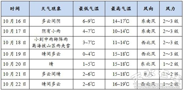 受冷空氣及高原暖濕氣流共同影響,預(yù)計(jì)本周17~18日有一次小到中雨過(guò)程,其中18日夜間高海拔山區(qū)陰有雨夾雪。