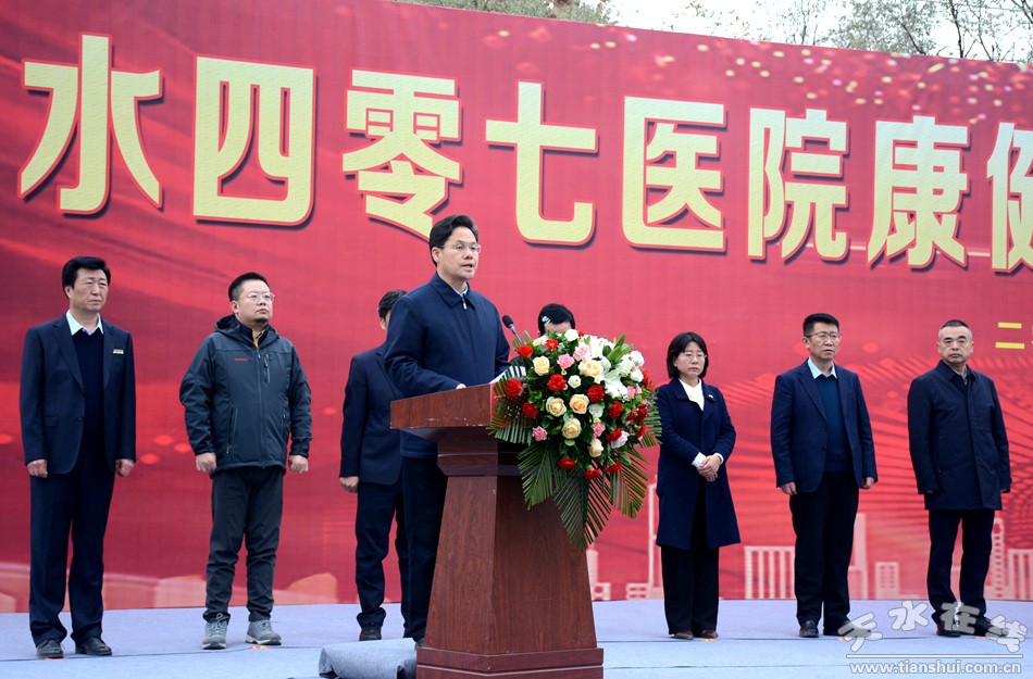 王國(guó)先在致辭中代表市委、市政府,對(duì)項(xiàng)目的開(kāi)工建設(shè)表示祝賀,向長(zhǎng)期以來(lái)關(guān)心支持天水衛(wèi)生健康事業(yè)發(fā)展的各界人士表示感謝。他指出,近年來(lái),天水市全面貫徹新時(shí)代黨的衛(wèi)生健康方針,深入實(shí)施人民健康優(yōu)先發(fā)展戰(zhàn)略,堅(jiān)持以“健康天水”建設(shè)為統(tǒng)領(lǐng),統(tǒng)籌推進(jìn)衛(wèi)生健康服務(wù)和經(jīng)濟(jì)社會(huì)協(xié)同聯(lián)動(dòng)發(fā)展,特別是把加快老齡事業(yè)發(fā)展、健全養(yǎng)老服務(wù)機(jī)制作為推進(jìn)“健康天水”建設(shè)的著力重點(diǎn),在老有所養(yǎng)、老有所醫(yī)、老有所為、老有所學(xué)、老有所樂(lè)等方面取得明顯成效。天水四零七醫(yī)院康健康復(fù)·養(yǎng)老項(xiàng)目是我市康養(yǎng)產(chǎn)業(yè)融合發(fā)展的重點(diǎn)項(xiàng)目,對(duì)于加快補(bǔ)齊全市老年健康服務(wù)短板,持續(xù)優(yōu)化老年健康服務(wù),構(gòu)建醫(yī)養(yǎng)結(jié)合服務(wù)新格局具有重要意義。項(xiàng)目建設(shè)和施工單位要強(qiáng)化責(zé)任意識(shí),加強(qiáng)統(tǒng)籌調(diào)度,精心組織施工,嚴(yán)格質(zhì)量管理,真正把這一民生工程建設(shè)成為造福人民群眾的示范工程、樣板工程。秦州區(qū)和相關(guān)部門(mén)要建立“項(xiàng)目管家”服務(wù)機(jī)制,主動(dòng)協(xié)調(diào)解決困難問(wèn)題,全力以赴保障項(xiàng)目早竣工、早投用、早見(jiàn)效。