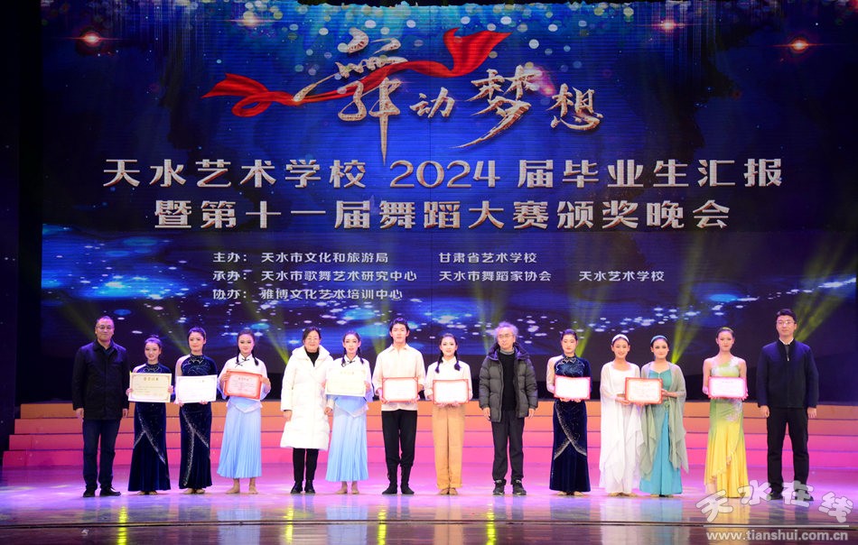 12月14日晚,“舞動夢想”天水藝術(shù)學(xué)校2024屆畢業(yè)生匯報暨第十一屆舞蹈大賽頒獎晚會在秦州大劇院舉行。市政協(xié)副主席吳立新出席活動并為獲獎?wù)哳C獎。