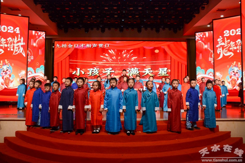 ▲特別環(huán)節(jié):天水九拍藝術(shù)學(xué)校向甘谷縣金山小學(xué)同學(xué)贈送新年禮物