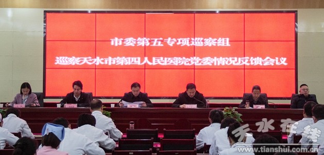 根據(jù)市委統(tǒng)一安排,1月18日,市委第五專(zhuān)項(xiàng)巡察組巡察市第四人民醫(yī)院黨委情況反饋會(huì)議召開(kāi)。市紀(jì)委常委、市委巡察工作領(lǐng)導(dǎo)小組成員、市委巡察辦主任蘇華出席會(huì)議并講話。會(huì)前,市委巡察組向市第四人民醫(yī)院黨委主要負(fù)責(zé)同志反饋巡察情況。會(huì)上,市委第五專(zhuān)項(xiàng)巡察組組長(zhǎng)李康寧向市第四人民醫(yī)院黨委反饋了巡察意見(jiàn)。市第四人民醫(yī)院黨委書(shū)記陳江魚(yú)主持會(huì)議并作表態(tài)發(fā)言。