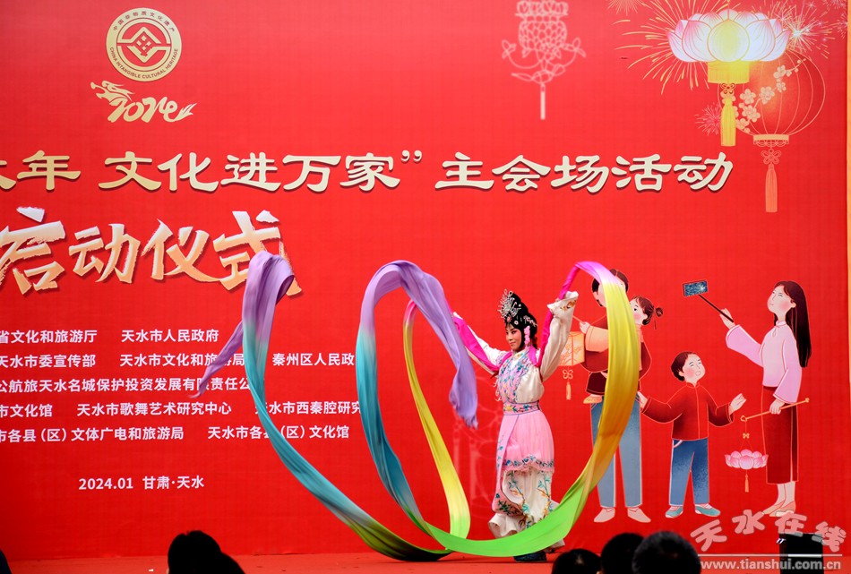 1月20日,由甘肅省文化和旅游廳、天水市人民政府共同主辦的甘肅省“非遺過大年 文化進(jìn)萬家”主會(huì)場活動(dòng)啟動(dòng)儀式在天水市西關(guān)古城舉行。省文旅廳黨組書記、廳長何效祖,天水市委副書記、市長王國先出席活動(dòng)并致辭,市委常委、宣傳部部長王文東,市人大常委會(huì)副主任沈建玲,市政協(xié)副主席吳立新出席活動(dòng),副市長董小平主持啟動(dòng)儀式。