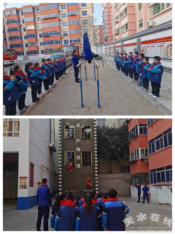 在天水市消防救援支隊(duì)青年講解員的帶領(lǐng)下,少先隊(duì)員們依次參觀了裝備展示體驗(yàn)區(qū)、消防員宿舍、營區(qū)訓(xùn)練場、文化建設(shè)區(qū)域等場所,少先隊(duì)員們認(rèn)真聽著講解員生動(dòng)形象的講解,觀看消防員“杠上飛”、“空中渡”實(shí)訓(xùn)演練,體驗(yàn)消防裝備,同時(shí),少先隊(duì)員們提出各式各樣的問題,積極與講解員互動(dòng),收獲滿滿的小知識。