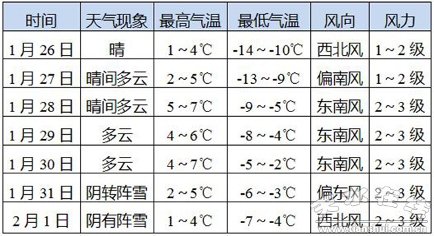 【摘要】預(yù)計未來一周(1月26日~2月1日),我市天氣以晴或多云為主,氣溫較前期有所回升。受高原槽和冷空氣影響,1月31日~2月1日,我市大部有降雪天氣,日最高氣溫略有下降,對春運有不利影響。
