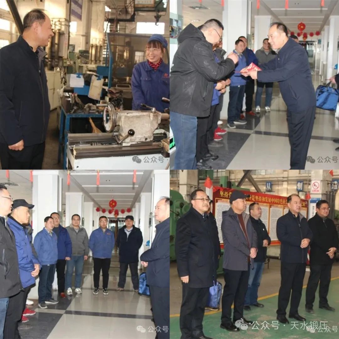 玉兔呈歡辭舊歲,神龍躍起展鴻猷。2月10日,大年初一一大早,天水鍛壓機(jī)床(集團(tuán))有限公司黨委書記、董事長(zhǎng)陳鴻率領(lǐng)導(dǎo)班子成員關(guān)尚虎、蔣文凱、白峰、楊軍、劉軍強(qiáng)、劉文革深入到生產(chǎn)一線,給春節(jié)加班、值班的職工拜年,為他們送上節(jié)日慰問(wèn)金和新春的祝福。