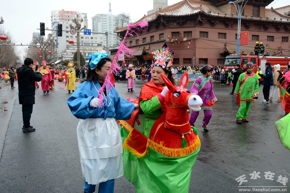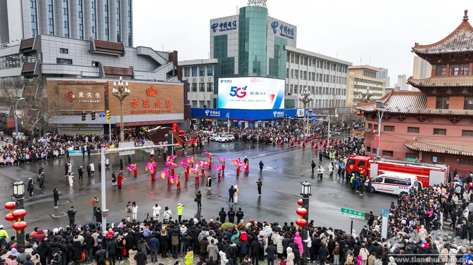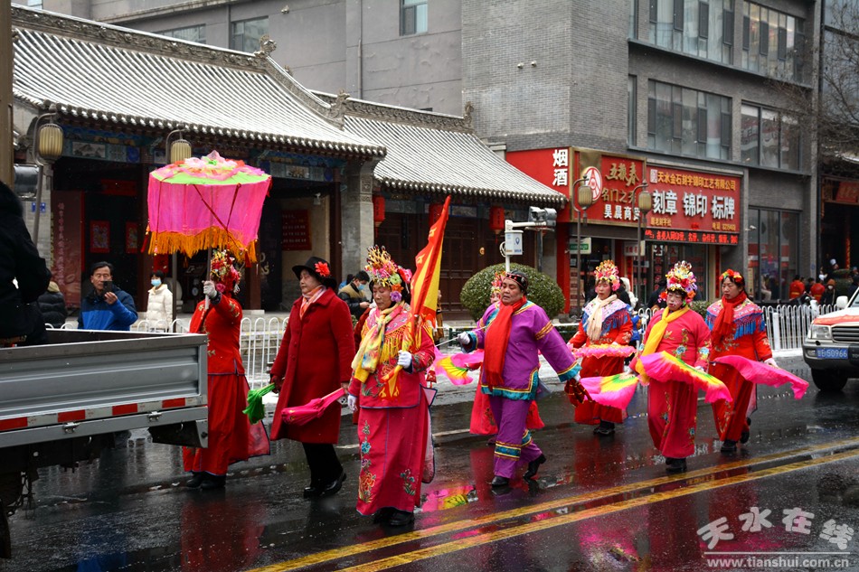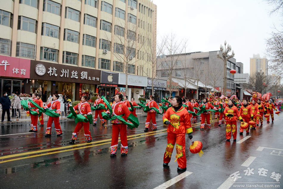 鑼鼓喧天鬧新春,傳統(tǒng)民俗年味濃。2月21日,農(nóng)歷正月十二,在漫天飛舞的雪花中,秦州區(qū)2024年春節(jié)社火匯演在主城區(qū)街道拉開了帷幕。來自各鄉(xiāng)鎮(zhèn)、社區(qū)的表演隊身著盛裝,載歌載舞,歡度新春,舞龍舞獅、扭秧歌、跑旱船、耍腰鼓……精彩紛呈的演出為市民奉獻了一場年味十足的民俗文化盛宴。