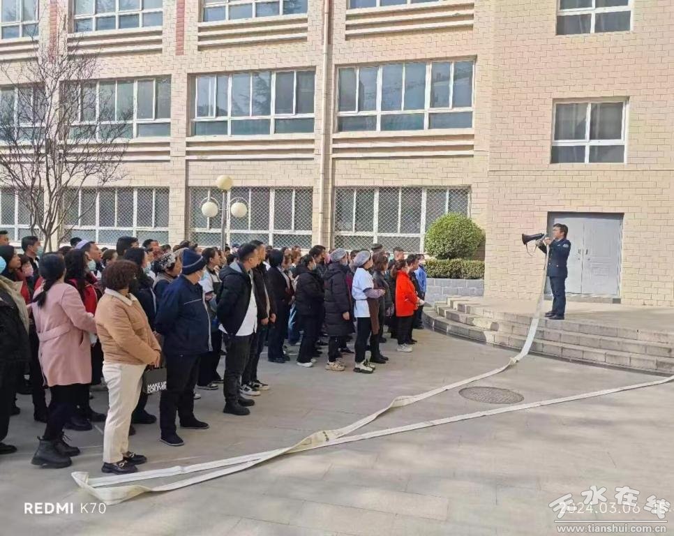 3月6日,學(xué)校開展消防安全活動(dòng)。天水市政安消防專業(yè)講師王維宗應(yīng)邀來校作消防安全知識(shí)講座并指導(dǎo)演練活動(dòng)。學(xué)校保衛(wèi)處、后勤處、餐飲公司有關(guān)負(fù)責(zé)人及工作人員200余人參加。